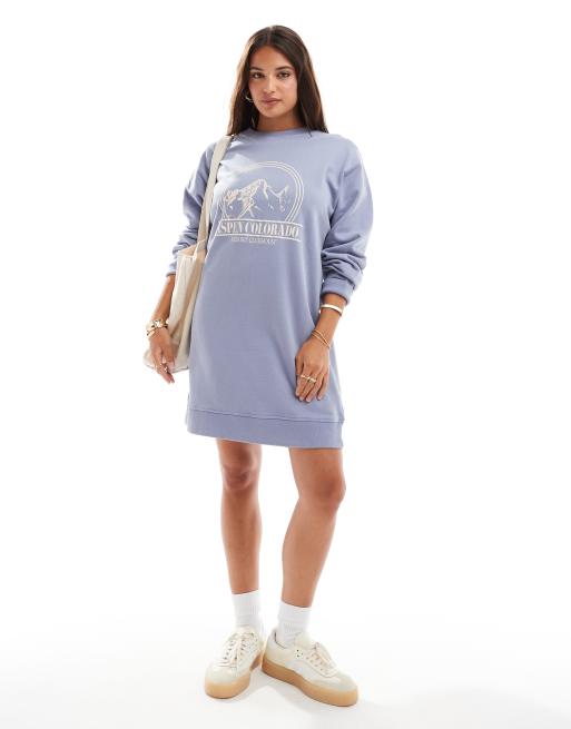 Vestido corto azul pastel lavado estilo sudadera extragrande con estampado gráfico de ASOS DESIGN
