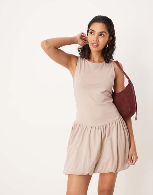 Vestido corto beis sin mangas con bajo abullonado de ASOS DESIGN