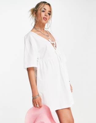 Vestido corto blanco de corte amplio con detalle de doble lazada de ASOS DESIGN