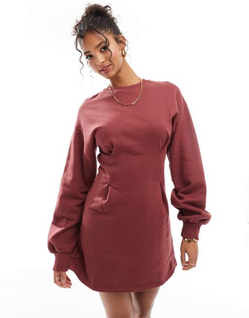 Vestido corto burdeos estilo sudadera con cintura ceñida de ASOS DESIGN