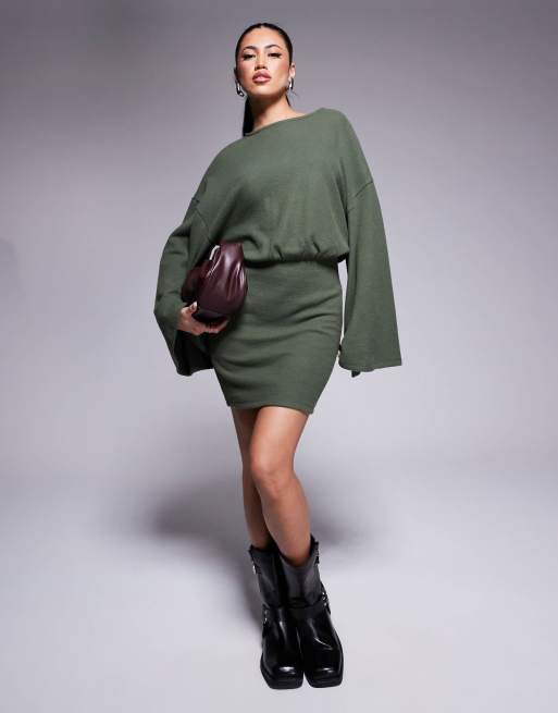 Vestido corto caqui de manga larga ancha estilo blusón de tejido muy suave de ASOS DESIGN