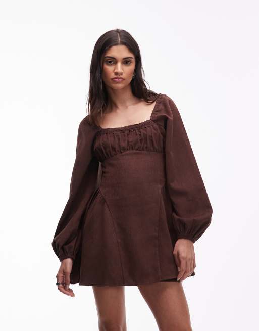 Vestido corto de corte skater con cuello cuadrado de pana de ASOS DESIGN