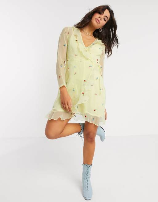 Vestido corto de organza bordada en amarillo de ASOS DESIGN
