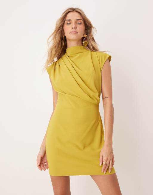 Vestido corto dorado sin mangas con cuello alto drapeado de ASOS DESIGN