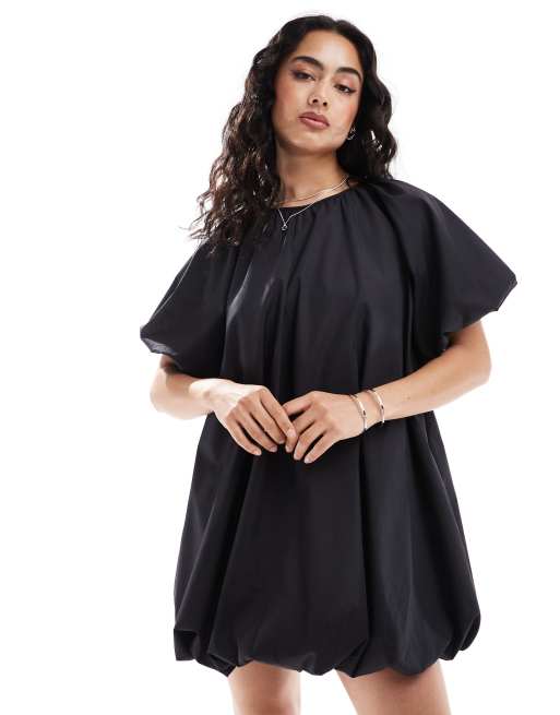 Vestido corto negro amplio y abullonado de ASOS DESIGN