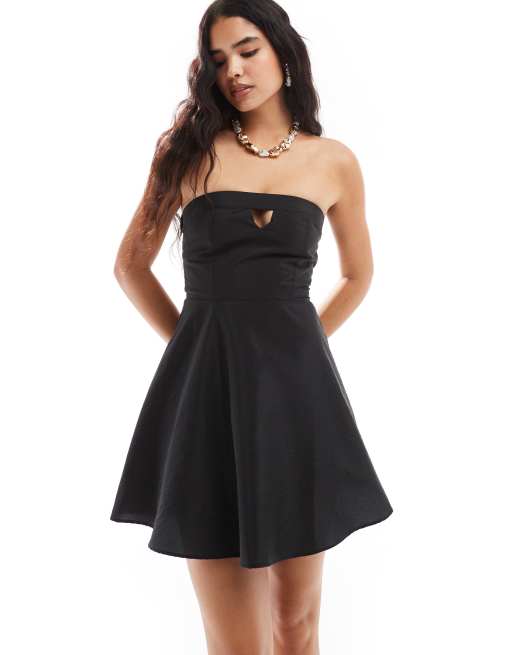 Vestido corto negro con escote palabra de honor y detalle de abertura de nailon de ASOS DESIGN