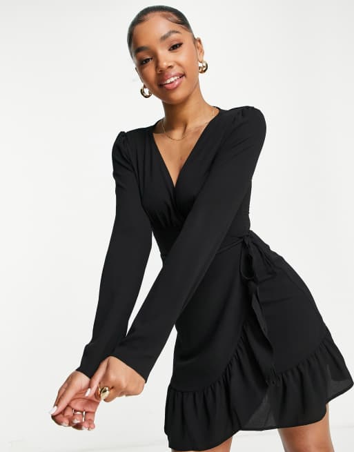Vestido corto negro cruzado en la parte delantera de ASOS DESIGN