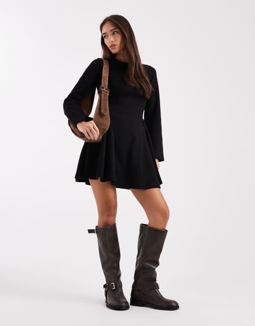 Vestido corto negro de manga larga con falda de godets de tejido muy suave de ASOS DESIGN