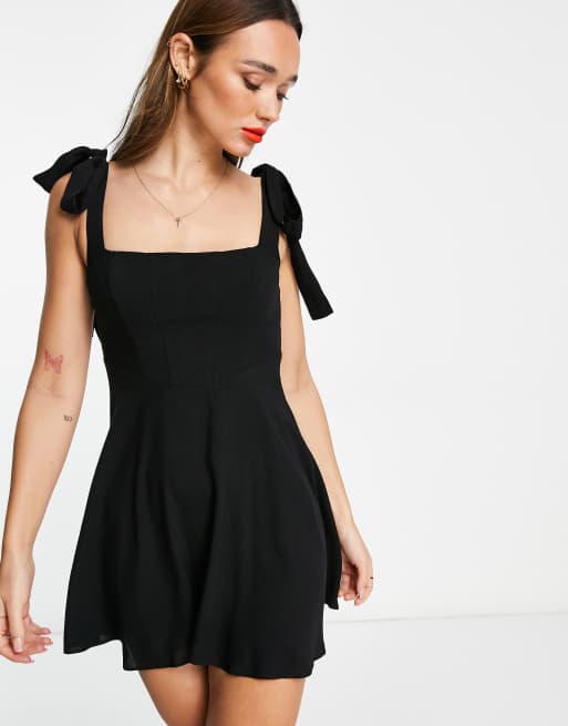 Vestido corto negro estilo corsé con tirantes anudados Spun de ASOS DESIGN