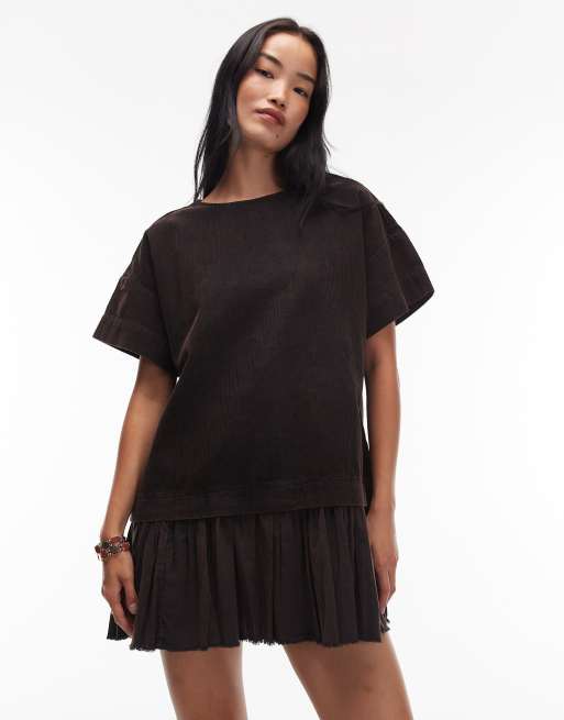 Vestido corto negro lavado de estilo camiseta con diseño híbrido de pana de ASOS DESIGN