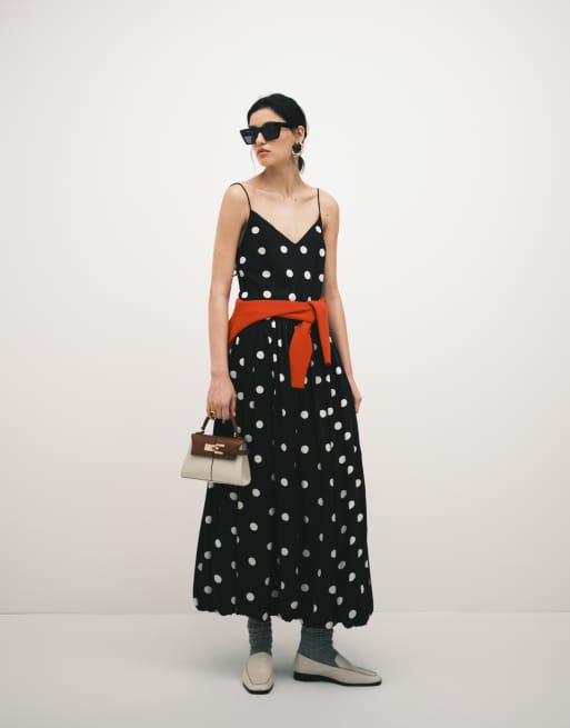 Vestido de corte al bies recto con falda abullonada y estampado de lunares monocromáticos de ASOS DESIGN