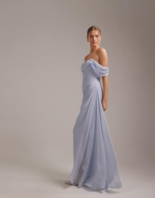Vestido de dama de honor azul con escote Bardot de georgette de ASOS DESIGN