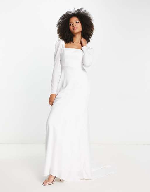 Vestido de novia de manga larga con escote cuadrado de satén Gigi de ASOS DESIGN