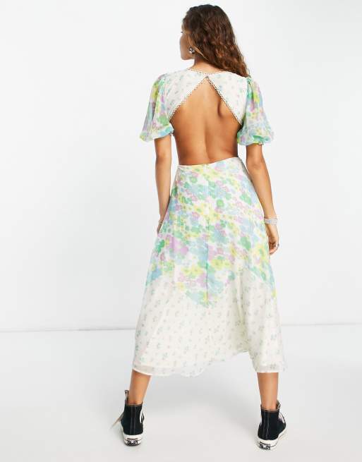 Vestido de tarde midi con abertura, estampado variado e insertos de encaje de ASOS DESIGN