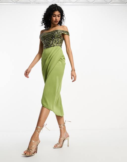 Vestido de tubo midi caqui con lentejuelas en el corpiño de ASOS DESIGN