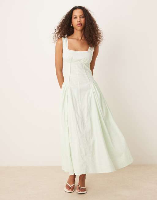 Vestido largo a cuadros vichy verde menta de estilo campestre con cuello cuadrado y cintura baja de ASOS DESIGN