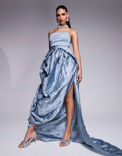 Vestido largo azul con escote palabra de honor y falda de tafetán texturizado premium de ASOS DESIGN