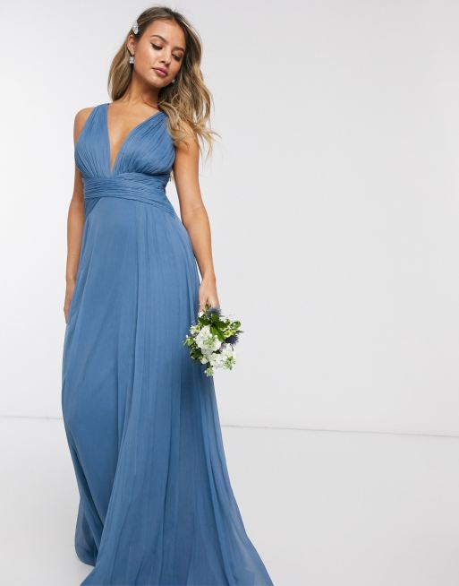Vestido largo azul de dama de honor con diseño drapeado, cintura cruzada y detalle de frunces de ASOS DESIGN