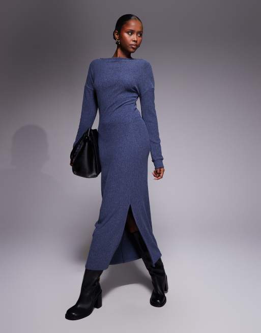 Vestido largo azul marino con cuello barco y sisas caídas de ASOS DESIGN