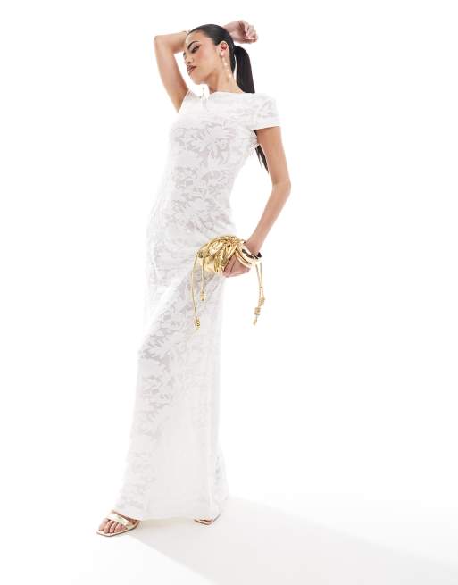 Vestido largo blanco con mangas de casquillo y diseño floral de devoré de ASOS DESIGN
