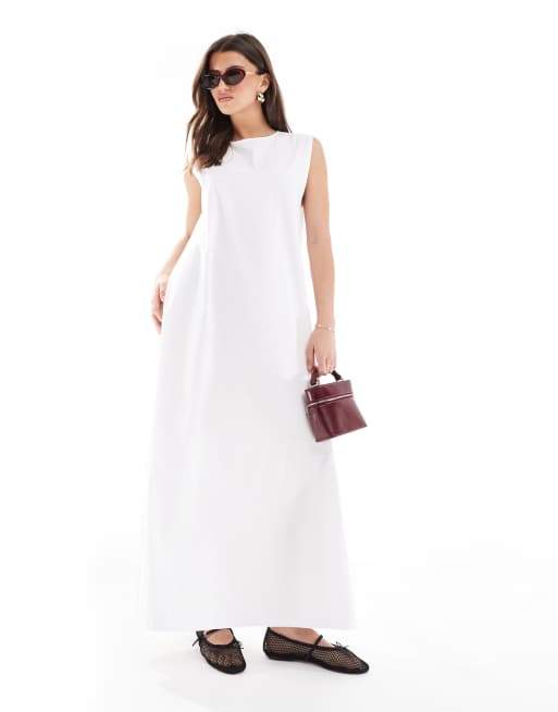 Vestido largo blanco de corte trapecio con pliegue en la espalda de popelina de ASOS DESIGN