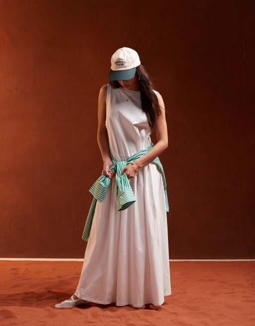 Vestido largo blanco luminoso sin mangas de corte amplio con espalda escotada y bolsillos de ASOS DESIGN
