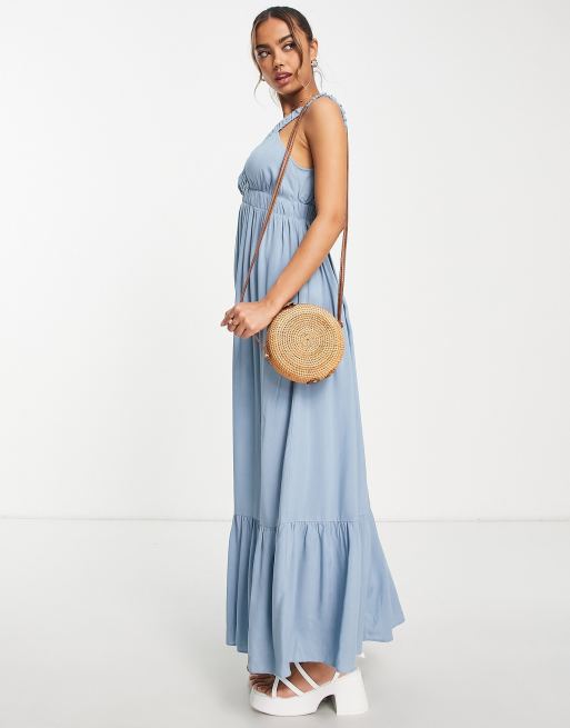 Vestido largo color huevo de pato con cuello y espalda de pico elásticos de ASOS DESIGN
