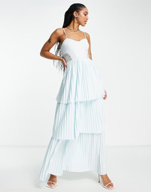 Vestido largo color menta plisado y escalonado de tirantes con detalle de encaje de ASOS DESIGN