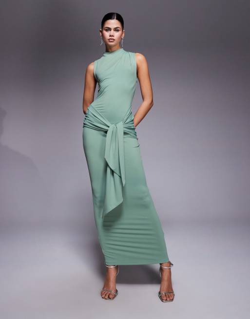 Vestido largo color salvia con detalle drapeado de ASOS DESIGN