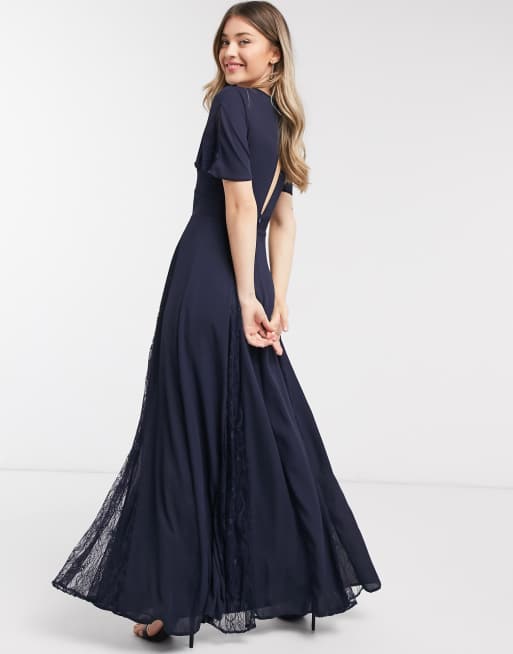Vestido largo de dama de honor con paneles de aplicaciones de encaje de ASOS DESIGN