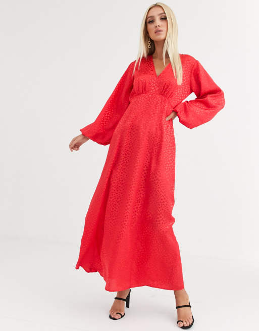 Vestido largo de jacquard con manga abullonada de ASOS DESIGN