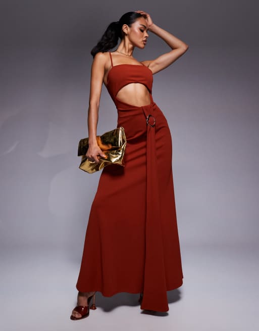 Vestido largo de tirantes con escote cuadrado y detalle colgante con hebilla de ASOS DESIGN