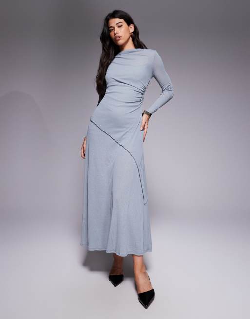 Vestido largo gris de manga larga con detalle drapeado de ASOS DESIGN