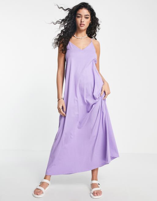 Vestido largo lila con cuello de pico y espalda abierta de ASOS DESIGN