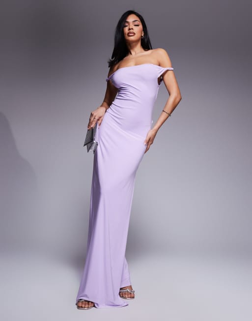 Vestido largo lila con detalle retorcido en el hombro y cordones en la espalda de ASOS DESIGN