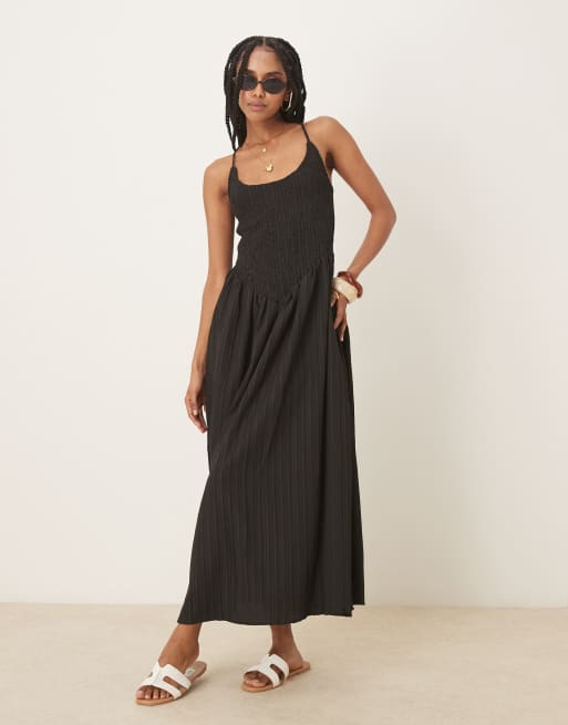 Vestido largo negro con cuello ancho y tiras cruzadas en la espalda de tejido rugoso de ASOS DESIGN
