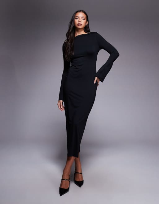 Vestido largo negro con cuello recto y mangas acampanadas de ASOS DESIGN