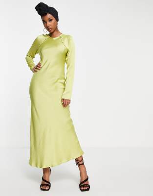 Vestido largo verde lima cortado al bies con detalle de botones de satén de ASOS DESIGN