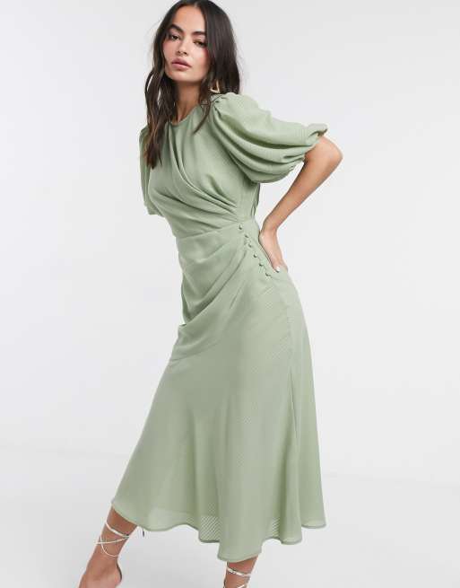 Vestido largo y fruncido con manga abullonada a cuadros en verde salvia de ASOS DESIGN