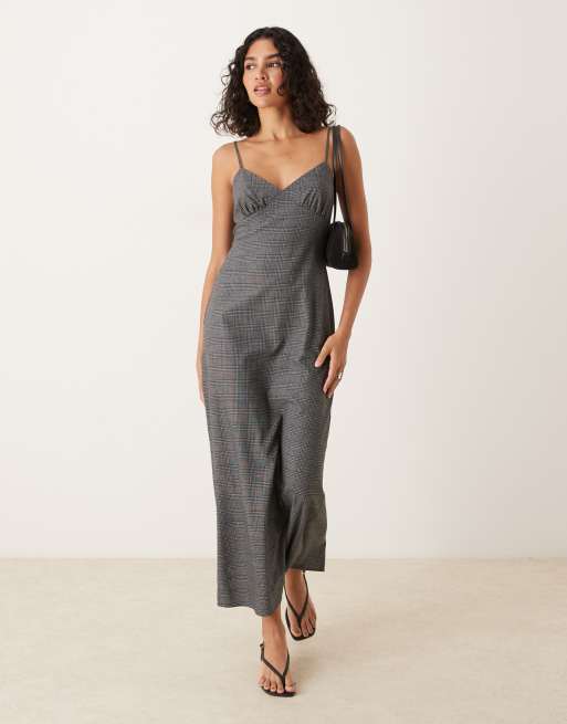Vestido lencero gris a cuadros de tirantes de ASOS DESIGN