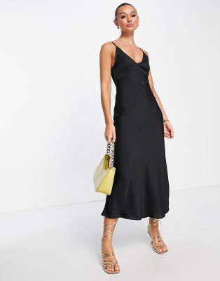 Vestido lencero largo negro con copas altas de satén repujado de ASOS DESIGN