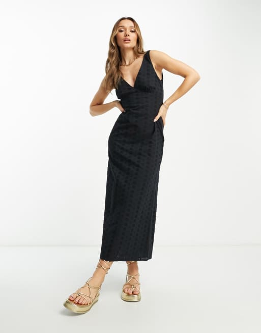Vestido lencero veraniego midi negro con cuello de pico y diseño bordado de ASOS DESIGN