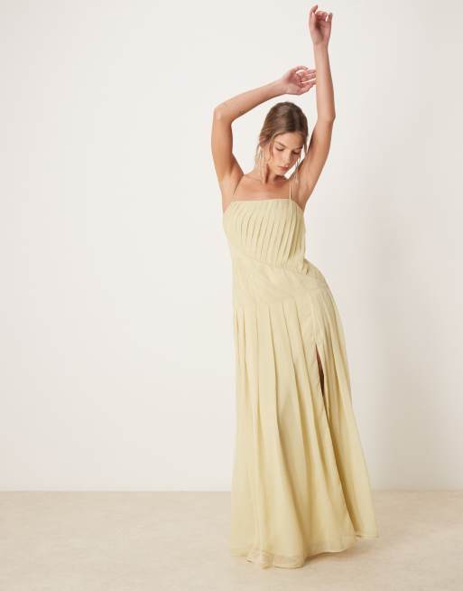 Vestido midi amarillo pálido de tirantes plisado de ASOS DESIGN