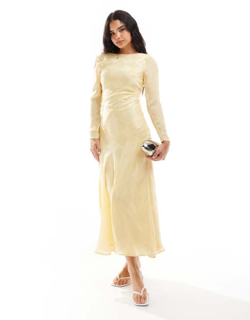 Vestido midi amarillo pastel a cuadros de manga larga con cuello alto de satén de ASOS DESIGN