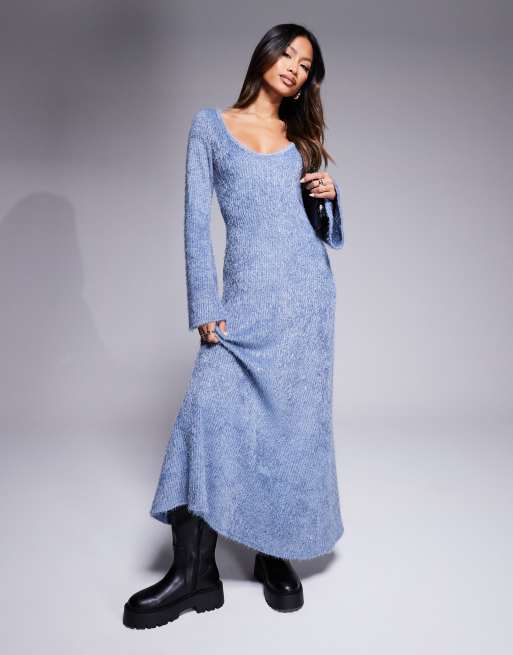 Vestido midi azul con mangas ángel y cuello ancho de punto mullido muy suave de ASOS DESIGN