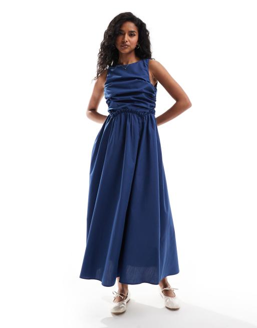 Vestido midi azul negruzco sin mangas con detalle de cuerpo fruncido de ASOS DESIGN