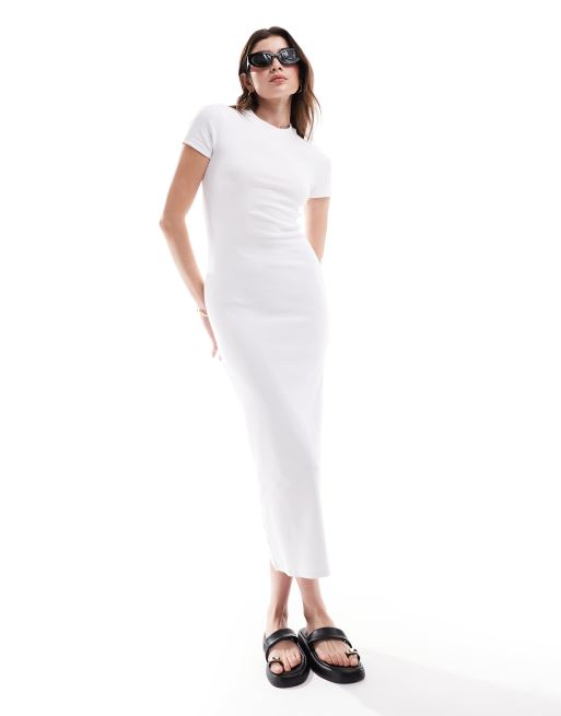 Vestido midi blanco de manga corta y corte recto de canalé de ASOS DESIGN