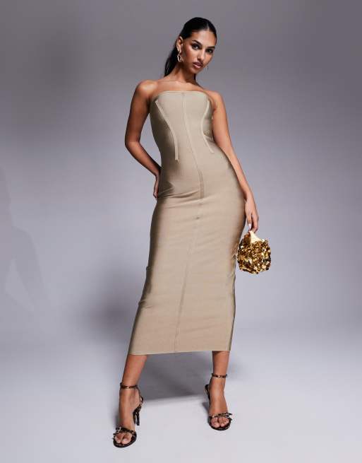 Vestido midi color piedra ajustado con detalle de costuras de ASOS DESIGN