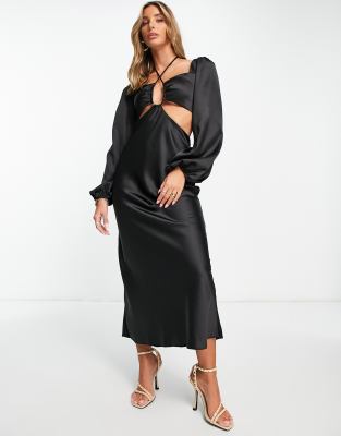 Vestido midi con aberturas de satén de ASOS DESIGN