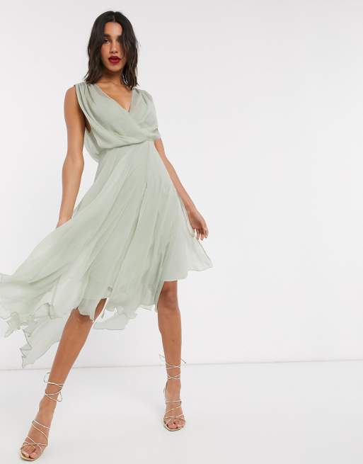 Vestido midi con corpiño cruzado y espalda drapeada de ASOS DESIGN